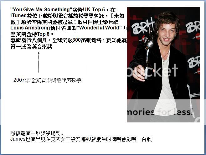 後來AL改成這樣 I expect that there will be a song, which style is like the song "too far gone", can be included in the new album, it's a really great song. Whatever James sings, I will love it anyway.