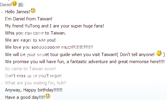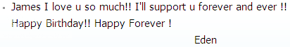 KAMILA: DEAR JAMES HAPPY BIRTHDAY TO YOU HOPE YOU HAVE A PRETTY AWSOME SUMMER!!!