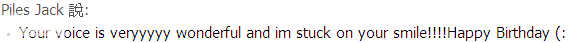 Your voice is veryyyyy wonderful and im stuck on your smile!!!!Happy Birthday (: