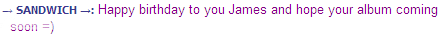 SANDWICH: Happy birthday to you James and hope your album coming soon =)