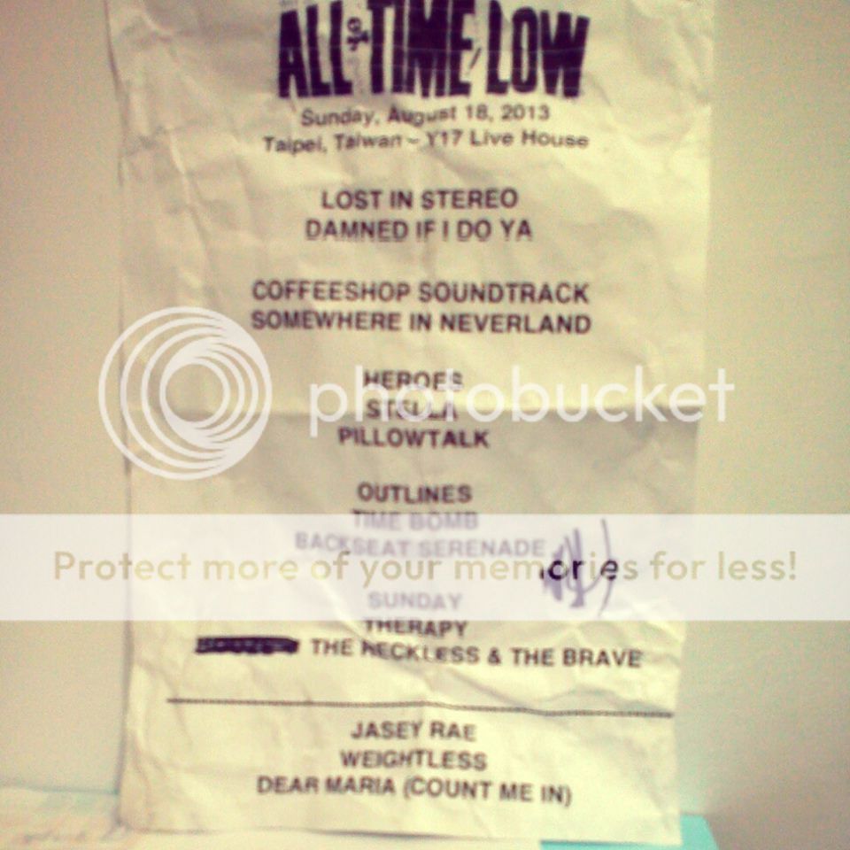 (All Time Low Taiwan 小編拿到的歌單!!!!!!果然有在第一區就是不一樣!!我什麼都沒拿到)