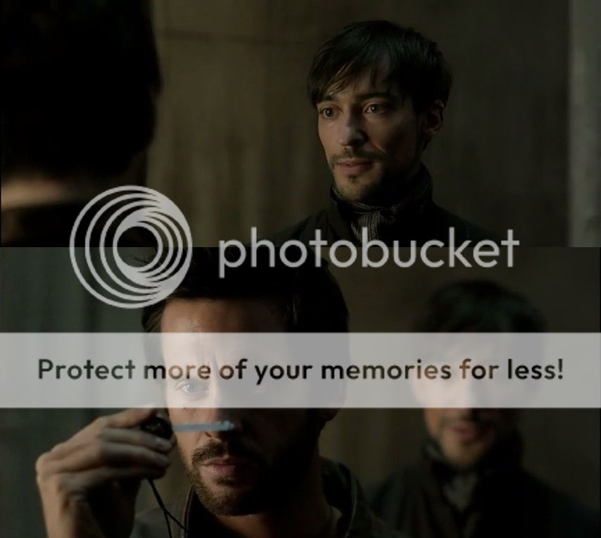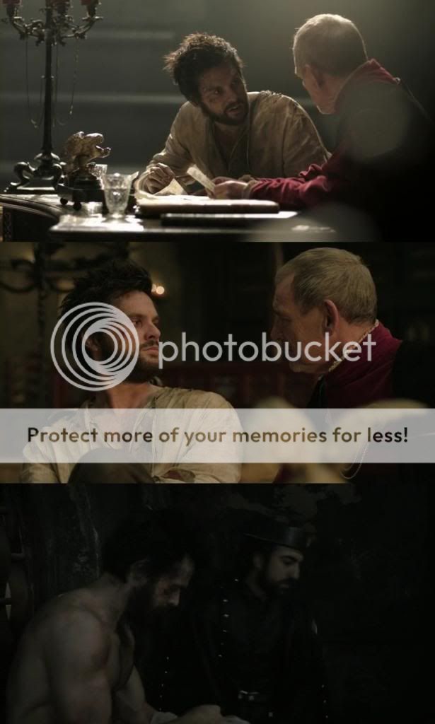 (這段對話後來頗傷心,因為Holy Father[他長得太猥褻了,所以沒他的臉,噗]說要Riario的女僕,雖然是奴隸,要借一個晚上,我們都知道那個猥褻、受人尊敬的色老頭要幹嘛阿。Riario聽到時,臉抽了一下,但他不得不答應。在此之前,Riario的這名女僕是外國人,不會當地語言,是Riario教她的。影集在小細節透露出Riario是個頗用心的人啊啊啊啊。嗚嗚說實在,Riario也只是一個棋子,但有誰不是?)